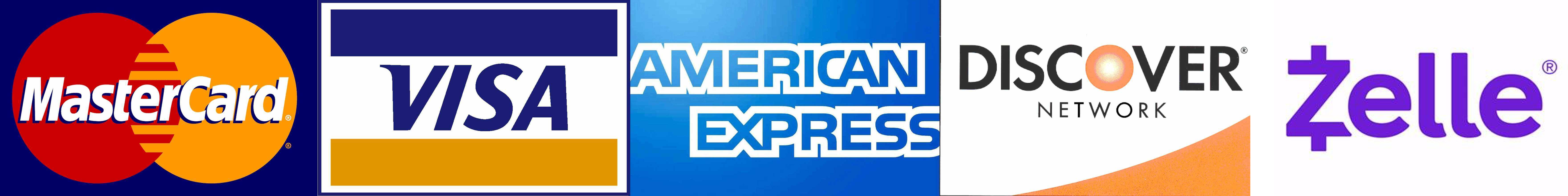 We accept Visa, American Express, MasterCard, Discover, and checks.